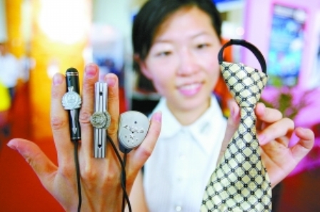 格子領(lǐng)帶、漂亮的徽章、黑色鋼筆帽……參展商頤信科技有限公司的工作人員介紹,任何物體經(jīng)過改裝都能藏進(jìn)針孔攝像頭,作為存儲(chǔ)設(shè)備的主機(jī)與攝像頭分離,只有收音機(jī)大小,約有一袋奶的重量,可以放在兜里,接出來的電線就像隨身聽的電線,既方便又隱蔽。這種警務(wù)隨錄機(jī)又稱現(xiàn)場(chǎng)執(zhí)法取證儀,用于各主要執(zhí)法部門的現(xiàn)場(chǎng)音視頻執(zhí)法取證工作,可以連續(xù)攝錄6個(gè)小時(shí)。