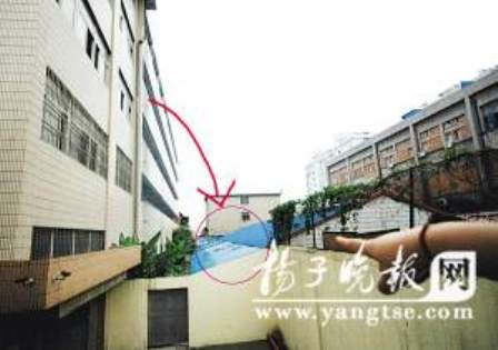 昨天上午9點(diǎn)多,記者接到報(bào)料后趕到現(xiàn)場,當(dāng)時(shí)距離該名男生跳樓還不足半小時(shí),受傷男生已被送到南京中大醫(yī)院搶救。據(jù)一位目擊該男生跳樓后情形的學(xué)校負(fù)責(zé)人介紹,當(dāng)時(shí)他正在二樓辦公室看報(bào)紙,只聽見窗外“哐”的一聲響,抬頭一看,竟然看到一名男生砸在附近廠房的彩鋼瓦頂上,將彩鋼瓦頂砸出了一個(gè)大窟窿。所幸該男生沒掉到窟窿里去,人還趴在屋頂上,他似乎還有意識(shí),本能地向屋頂上方挪動(dòng)了幾下身體,這位目擊者還有附近樓上居民看到這情形,還叫那男生“別動(dòng)別動(dòng)……馬上叫人來救你!”那男生隨后就抓住了廠房屋頂?shù)囊桓鶛M梁,就沒再動(dòng)彈了。“從他那時(shí)候的表情看,肯定摔得不輕,連喊救命的力氣都沒了,當(dāng)時(shí)替他捏了把汗,能保命是關(guān)鍵啊!