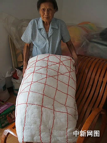 據(jù)伏老太的女兒劉桂華介紹,她老母親十六歲起就開始吸煙,至今從未停止過。七十年代起,吸帶有過濾嘴的卷煙,每天半包或一包不等,都是低檔煙。每次抽煙前,她都習(xí)慣地將香煙上的過濾嘴掐斷,存放一邊,集中一斷時間后,再將過濾嘴里的海綿一一剝下來,日積月累,年復(fù)一年,海綿聚集成幾大蛇皮袋。劉桂華說:“我們子女曾經(jīng)不讓媽媽這樣吸煙,更不讓她將海綿積累起來,可她執(zhí)意不讓并認(rèn)為里面的海綿比棉花好,丟掉可惜,萬萬想不到她用這些海綿彈成了一床被絮!