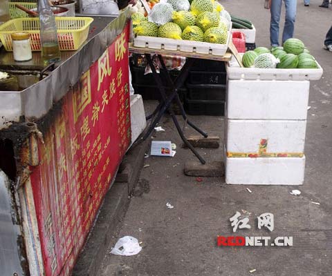目前雙方恢復(fù)營業(yè),“敏感地帶”仍擺放著兩壘西瓜