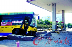 昨日下午,據(jù)高明交警部門通報(bào)稱,經(jīng)過(guò)初步調(diào)查,505路公交車的駕駛?cè)诵つ绸{駛粵E×1842號(hào)大客車從該區(qū)更樓公交車站出發(fā),往高明汽車站,途經(jīng)高明大道團(tuán)力加油站時(shí),因未與前車保持安全距離,在前車剎車時(shí),為避讓前車,往右打方向,導(dǎo)致大客車駛上花基,再與加油站設(shè)施相撞后停車。
