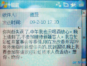 帖中寫道:樓主數(shù)日前拾得手機(jī)一部,經(jīng)查看后發(fā)現(xiàn),機(jī)主為江蘇某市經(jīng)濟(jì)開發(fā)區(qū)一位王姓女局長。該女局長同時(shí)與多位男士長期保持著曖昧關(guān)系。隨帖還貼出了多張手機(jī)中的短信翻拍圖片,清晰可見其曖昧文字內(nèi)容,同時(shí)也可發(fā)現(xiàn)其發(fā)短信的時(shí)間跨越了2006~2009年。