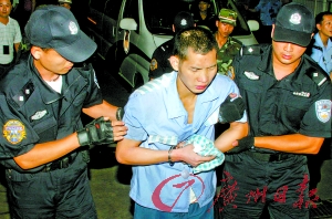 杜秋發(fā):沒有。過去我們從審訊他的同伙中知道成瑞龍雖然六親不認(rèn),但心里還是牽掛自己的兒子的,當(dāng)我們問他有什么要求時(shí),他回答說:“我最關(guān)心我仔,希望能見到他。”我當(dāng)時(shí)就說:“等回到佛山,他們會盡量安排你們見面的,而且我們看到你兒子了,長得很高大很帥。”他的情緒很快就恢復(fù)平靜,對殺害佛山民警案件供認(rèn)不諱,后來一路押解回來也很順利。