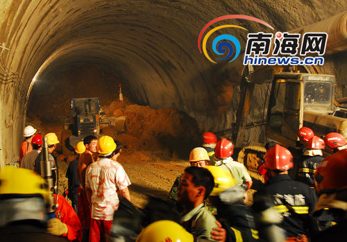 在施救現(xiàn)場,三亞市長市長助理、公安局局長王少山接受南海網(wǎng)記者采訪時說,由于塌方面在離隧道口400米的隧道深處,塌方處工作面狹窄,只能容下一臺挖掘機,邊挖掘還繼續(xù)有土塌現(xiàn)象發(fā)生,影響到救援的速度,現(xiàn)已約運出了3000余立方沙土。據(jù)現(xiàn)場消防官兵及其他施救人員反映,現(xiàn)已經(jīng)能隱隱約約聽被困人員發(fā)出來的求救聲音。