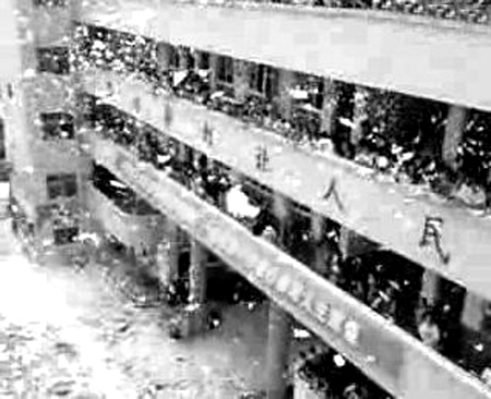 情景 百名學(xué)生教學(xué)樓上撕書