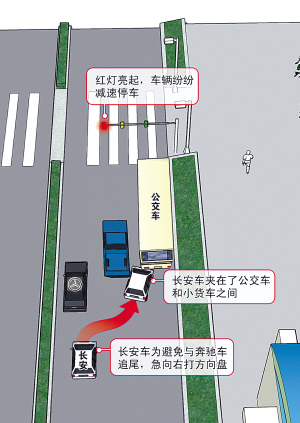 司機:一是對著我行駛的車道撞過去,前面就是輛奔馳;要不然,就卡在公交車和貨車中間那個位置。我選擇了后者。