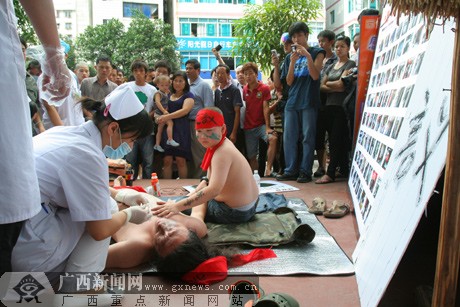 16時46分,廣西中醫(yī)附屬醫(yī)院的救護(hù)車到現(xiàn)場對商戶劉先生進(jìn)行脈搏和血壓的測量,并建議馬上去醫(yī)院。在多次表明要堅持等城管相關(guān)領(lǐng)導(dǎo)來給大家做合理解釋時,商戶劉先生昏迷。在周圍群眾的幫助下,商戶劉先生被抬上救護(hù)車,送往廣西中醫(yī)附屬醫(yī)院救治。