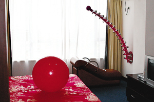 五十多平方米的房間內(nèi),燈光溫馨曖昧,一張大紅床格外引人注目,情趣用品一應(yīng)俱全。記者看到,跟一般的酒店里陳設(shè)不同的是,房間里有很多奇形怪狀的家具。據(jù)周某介紹,除了床是電動床以外,還有歡樂椅、情趣球、S形沙發(fā)等!斑@些可不是體操運動器材,而是情趣酒店的特別設(shè)施,專門供夫妻情侶性生活用的。”