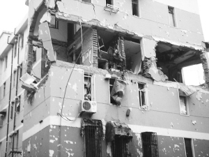 事發(fā)后,樓內(nèi)有居民自行逃出,警方和消防搶險(xiǎn)人員趕到后,從中救出了數(shù)名傷員。爆燃產(chǎn)生的巨大沖擊波,還致使樓房旁一根高約15米的電線桿發(fā)生傾斜。供電部門(mén)為安全起見(jiàn),切斷了整個(gè)小區(qū)的供電。記者在現(xiàn)場(chǎng)看到,一輛電力搶修車已送來(lái)一根新電線桿,準(zhǔn)備待警方勘查完后施工。
