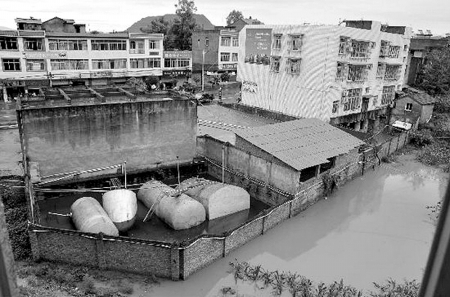 2009年6月19日8時(shí)許,四川省閬中市老觀鎮(zhèn)加油站因近日連降大雨,導(dǎo)致加油站附近排水系統(tǒng)阻塞,致使周圍大量雨水涌入油罐池。分別儲存柴油32噸、93汽油10噸、90汽油10噸的4個(gè)油罐上浮移位,其中一個(gè)發(fā)生傾斜,連接油罐的輸油管道在浮力作用下斷裂,引發(fā)罐內(nèi)油品泄漏。