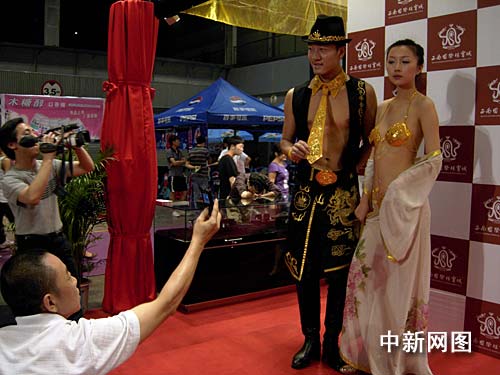中新網(wǎng)重慶6月27日電 (姜誠意) 27日,在此間舉辦的重慶婚博會(huì)上,一名醉意熏熏的男子借著酒意,在內(nèi)衣女模面前大膽越界拍照,甚至企圖手摸女模展示的天價(jià)黃金內(nèi)衣,嚇得模特花容失色并停止了展示。