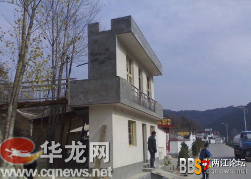 從正面看,這是一棟還算豪華的農家兩層小洋房;但是從側面看,則是僅有1.5米的墻體,墻體背后是破舊的土坯房子。今天上午,這張被網友稱為中國最!伴T臉房”的照片,出現(xiàn)在華龍網兩江論壇上,引起網友的熱烈討論。