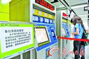昨日上午9時(shí)20分,記者剛進(jìn)地鐵三號(hào)線(xiàn)廈滘站就聽(tīng)到了廣播,“由于地鐵站硬幣不足,請(qǐng)乘客自備硬幣購(gòu)票!庇浾呖吹,雖然這時(shí)候已經(jīng)不是上班的高峰期,但很多乘客因?yàn)闆](méi)有帶足一元的硬幣,在售票機(jī)上買(mǎi)不了票,只好在人工售票窗口前排隊(duì)購(gòu)票,記者看到,這時(shí)候窗口前排隊(duì)的市民有10多人,手上拿的都是10元、20元的票子,售票人員一直忙個(gè)不停。