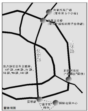 “真有那么夸張,親眼所見!睂τ诨顒釉跂|部客運站的“黑西裝”團伙,帖主強調(diào)“親眼所見”的同時,還用了“夸張”一詞描述。帖主說,你提包上車時“黑西裝”一哄而上,伺機下手。而在金星立交橋附近,則有個三年如一日背著個不會長大的娃娃的男人,很好認(rèn),(大家要)見他就閃!還有,國際會展中心那里,至少兩個人……遇到在昆明站轉(zhuǎn)悠的“鑷子黨”,不要把錢放在外衣口袋里。