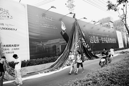 奧巴馬、巴菲特、李政道、蓋茨,這些大人物近日齊刷刷地登上了西安一樓盤(pán)的戶(hù)外廣告,可是賺足了眼球。昨日,記者發(fā)現(xiàn)此處已換上新的廣告,雖然總體意思沒(méi)變,但原本的名人頭像已悄然消失。
