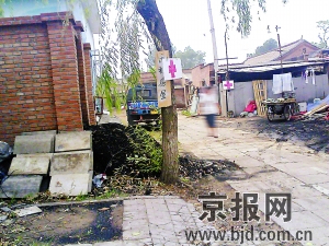 在金盞南村,一處窄小巷口路邊掛著一塊畫著紅色十字標(biāo)志的硬紙殼牌子,與村子里其他地方掛著的“高價(jià)收廢品”牌子相比,這塊牌子似乎更加低調(diào),連個(gè)漢字都沒有。