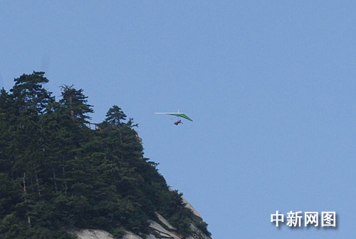 中新網(wǎng)陜西華山7月18日電(記者 冽瑋 )7月18日上午,號稱“中國第一飛人”、年已66歲的衣瑞龍駕駛無動力三角翼滑翔機(jī)成功飛越了西岳華山。他是目前中國用三角翼飛翔的第一人,是至今國內(nèi)飛過高山最多的探險家,也是他第五次飛越這座被譽(yù)為“天下奇險第一山”。