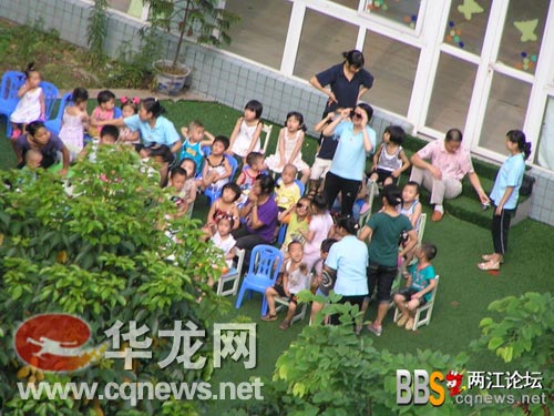 上午11:20分,網(wǎng)友“上面有人”在華龍網(wǎng)兩江論壇上發(fā)帖,稱幼兒園老師帶領(lǐng)小朋友集合到操場,基本上在沒有保護(hù)措施的情況下觀看日全食,并附上了6張照片。