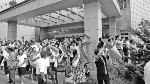 讀者方序:日食開(kāi)始時(shí),浙醫(yī)二院一對(duì)母女提著鹽水瓶到外面觀看。