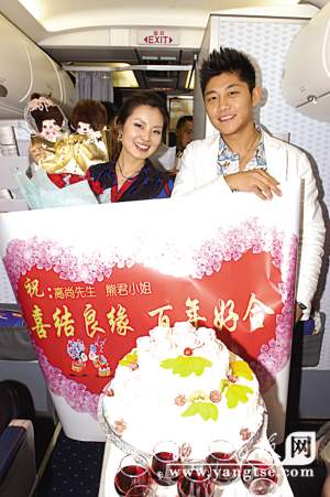 7月25日下午4:00,東航江蘇公司南京—北京的MU2831航班上演繹了一場長達(dá)15分鐘的空中求婚儀式。英俊帥氣的北京小伙子高尚先生和年輕貌美的南京姑娘熊君小姐無疑成了當(dāng)日航班上最幸福的人。
