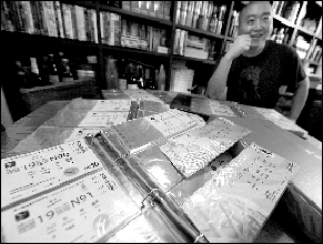 今年33歲的何海洋是小區(qū)里家喻戶曉的收藏狂人,走進(jìn)他80多平方米的房間,簡直像進(jìn)了一個(gè)收藏品倉庫?煽诳蓸穾缀跛心甏陌b瓶、限量版伏特加等藏品占據(jù)了很大空間,而最新的藏品則是一套北京奧運(yùn)會(huì)所有比賽項(xiàng)目和開閉幕式晚會(huì)的656張完整門票。