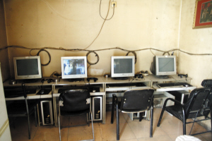 按照王先生的指引,昨天上午,記者來(lái)到了位于新中村的這家底商。只見(jiàn)大門(mén)上除了網(wǎng)吧兩個(gè)字之外,并沒(méi)有具體的招牌。走進(jìn)屋內(nèi),50多平方米的室內(nèi)擺有30多臺(tái)電腦。兩名20歲左右的男青年坐在控制室里負(fù)責(zé)收錢(qián)。此時(shí),一名中年男子走了進(jìn)來(lái),對(duì)控制室內(nèi)的一名黃頭發(fā)青年說(shuō)道:“網(wǎng)管,幫忙給上一下。你教過(guò)我的,可我沒(méi)記住!闭f(shuō)完,兩人就很有默契的一起來(lái)到了靠近角落的一臺(tái)電腦旁。