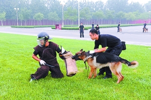 昨天,十余名首都機(jī)場分局馴犬員帶領(lǐng)著6只德國牧羊犬在首都機(jī)場專機(jī)樓廣場進(jìn)行了集訓(xùn)。這6只警犬是今年6月,機(jī)場公安分局張志副局長帶隊(duì)三上沈陽到公安部沈陽警犬基地精心挑選的。入選條件非常嚴(yán)格,從警犬的神經(jīng)類型敏感度到興奮度,從犬只的聽力到四肢的力量,都需要符合嚴(yán)格標(biāo)準(zhǔn)。(記者王薔)