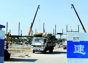 昨日10時(shí)許,朝陽(yáng)區(qū)天澤路東,曾經(jīng)繁華熱鬧的星吧路餐飲街被圍在新砌的白粉墻內(nèi),拆成了一片空曠地,僅剩的一棟2層小樓露出了鋼骨架,十幾名工人扛著大錘、電焊槍在作業(yè)。幾錘下去,一片墻體就塌了下去。一名工地施工人員證實(shí),這就是“老外釘子戶(hù)”的餐吧,“等了兩三個(gè)月,終于拆了!彼f(shuō),預(yù)計(jì)當(dāng)日可基本拆除。