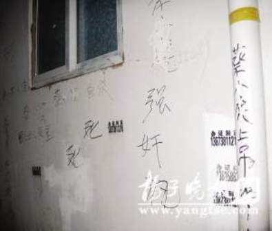 “看見(jiàn)兩個(gè)女子趁黑在墻上寫(xiě)東西,現(xiàn)在看來(lái)就是寫(xiě)這些東西了。”一位目擊者告訴記者,前天晚上,趁著天黑,有兩名女子來(lái)到明園這戶居民家門前,開(kāi)始寫(xiě)東西,左寫(xiě)右寫(xiě),寫(xiě)了約摸有十幾分鐘就走了,昨天早上8點(diǎn)多,戶主起床開(kāi)門后,這才發(fā)現(xiàn)自家墻上及附近低矮的圍擋板上,均有指名道姓的罵人語(yǔ)句。記者看到,從戶主蔡先生家門兩邊向外,以及對(duì)門的圍擋板上,留有大黑簽字筆寫(xiě)下的罵人語(yǔ)句,諸如“蔡某某人渣”、“蔡某某缺德”、“蔡某某強(qiáng)奸犯”等等,還有一些更加不堪入耳辱罵的話,讓人看了瞠目結(jié)舌。粗略數(shù)數(shù),多達(dá)十幾處。
