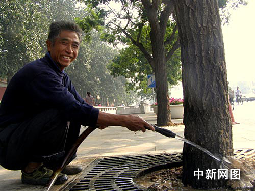 負(fù)責(zé)澆灌長(zhǎng)安街沿路綠樹(shù)和花卉的工人侯立昌,每天從早上6點(diǎn)一直工作到晚上7點(diǎn)。“國(guó)慶人手不夠,咱們都得加班了”,61歲的侯立昌笑著告訴記者,每天澆完近60棵樹(shù)后,他都會(huì)加班參加鋪草坪、栽種花卉等工作。他說(shuō),加班從晚上11點(diǎn)開(kāi)始,最短兩小時(shí),最長(zhǎng)要工作到凌晨三四點(diǎn)。