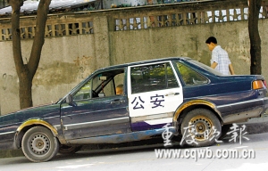 近日,南岸區(qū)天臺崗小學(xué)附近出現(xiàn)了一輛奇怪的“警車”(如圖),該車除兩扇門采用警車涂裝,擁有警用徽標(biāo)和“公安”字樣外,其余部分通體深藍(lán)色、殘破不堪。這樣的車怎能執(zhí)行任務(wù)?路過的人都感到納悶。