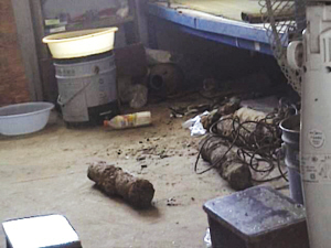 昨天中午12點(diǎn)左右,一個收廢舊的來到這家工地,說是收廢舊,其實(shí)是想收點(diǎn)文物,因?yàn)楣さ亟?jīng)常能挖出些瓶瓶罐罐的。一個民工說他有好東西,就把收廢舊的帶到了宿舍,從床下掏出個銹跡斑斑的東西,說這些陶罐能值多少錢啊?收廢舊仔細(xì)一看,哪里是什么陶罐,明明是枚炮彈,而且床下還有3枚。乖乖!敢情前天一夜我們都睡在炮彈上,同宿舍的民工都炸了。工地的安全員趕到,立刻報警。不久警察趕到,封鎖了現(xiàn)場,并通知了排爆大隊(duì)。這4枚炮彈長約40厘米,直徑約20厘米,這位民工說是前天夜里施工時,挖土機(jī)挖出來的,他以為是陶瓷罐,就放在了床下。警察說炮彈里是有火藥的,但因?yàn)殇P得嚴(yán)重,還辨認(rèn)不出是什么炮彈。這些炮彈很不穩(wěn)定,雖然很少爆炸,但遇到高溫或撞擊就難說了。下午1點(diǎn)鐘排爆大隊(duì)趕到,將炮彈帶走。 (吉啟雷)