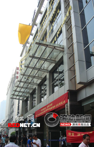 “一共懸掛了500條男性黃色內(nèi)褲,其中一條最大的男性內(nèi)褲,長(zhǎng)4米,寬3米,特意在外面定做的,是長(zhǎng)沙城最大的內(nèi)褲!贬t(yī)院工作人員熊先生說(shuō),醫(yī)院在進(jìn)行中國(guó)長(zhǎng)沙內(nèi)褲文化展,里面懸掛了一些宣傳圖片,懸掛500條男性內(nèi)褲是他的主意。