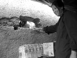 省實驗中學(xué)南側(cè)是一道高大的磚石院墻,但仍擋不住小攤食品。記者看到,院墻被掏開一個小洞,洞南邊是一個用帆布臨時搭建的小棚子,棚子里擺著飲料、香腸、方便面,女?dāng)傊髡褞灼匡嬃享樦催f給那邊的學(xué)生。僅10分鐘,女?dāng)傊鞅阗u出了20多瓶飲料。