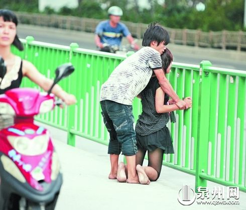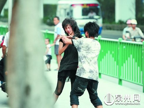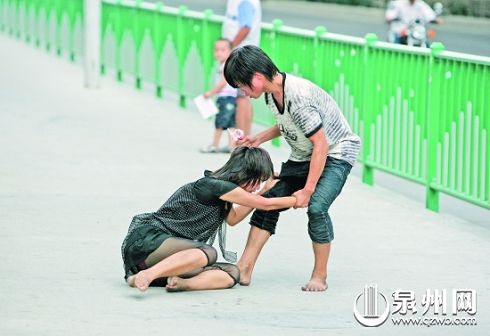昨日下午4時15分許,泉州市區(qū)坪山路與寶洲街交界處的鑫億大廈樓下,一對雙雙赤腳的青年男女拉拉扯扯大聲爭吵,引來路人圍觀。
