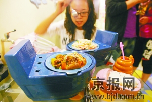 這家小店的創(chuàng)意來自國外。李女士表示,她從新聞上看到日本有“便便”餐廳后,立即對此產(chǎn)生了濃厚興趣,隨后開始設(shè)計(jì)裝潢小店,并專門定制了全套“便式”餐具。作為京城第一家?guī)黝}餐廳,它受到了追逐潮流的年輕人的熱捧。李女士表示,現(xiàn)在每天客流都在百人以上。