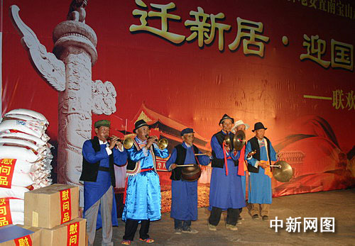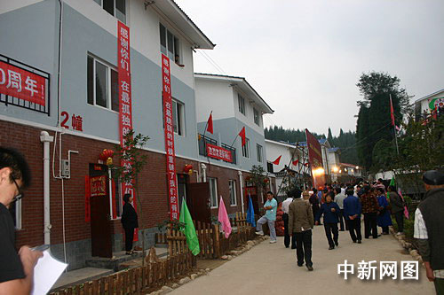 9月28日晚,當(dāng)?shù)嘏e行了“遷新居•迎國慶”5.12大地震失地群眾異地安置聯(lián)歡晚會,南寶山的新主人們穿上盛裝,點燃篝火,跳起歡快的鍋莊,祝福祖國60歲生日。