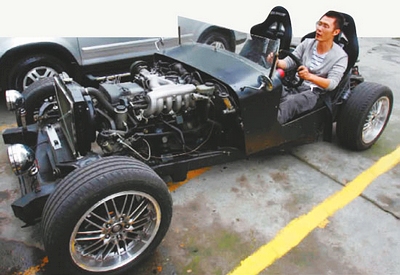 “半年前我一個好朋友興趣大發(fā),準備自己造車,首先弄個車架、發(fā)動機和手動變速箱……”昨日,網(wǎng)名為“圣之夜 ”的網(wǎng)友在四川某汽車論壇上發(fā)帖稱,他的朋友制作了成都首輛DIY(自己動手)漂移車。該網(wǎng)友上傳了一組反映該汽車組裝全過程的照片。此外,還有一段該車不久前在金港賽道上玩漂移的視頻。從照片中記者看到,這是一輛酷似老爺車的黑色敞篷車,汽車引擎、油箱、車座等全部裸露在外,車座是賽車椅子,車座兩旁沒有安裝車門,真可謂全敞篷。