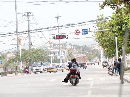 10月8日,一位從華山大街向東行的外地司機(jī)把車停在民生街丁字口的紅燈前,不知道如何是好。原來(lái)前方的紅燈亮著,但是旁邊的藍(lán)牌子上卻寫著“紅燈亮?xí)r 直行通過(guò)”,他看著身邊的車既有飛馳通過(guò)的,還有停車觀望的,更多的是半停半走猶豫不決的。所以不知道該怎么辦。而渭南的出租車司機(jī)老胡說(shuō),這個(gè)紅綠燈堪稱“最牛”,設(shè)立得根本就不科學(xué),設(shè)立這么一個(gè)牌子,難道旁邊還要再加個(gè)牌子說(shuō)綠燈亮?xí)r繼續(xù)通行?當(dāng)?shù)厝舜蠖济靼,這個(gè)紅綠燈設(shè)立的目的是限制向北拐的,只要把紅綠燈設(shè)置個(gè)向北的箭頭就可以了,而弄個(gè)紅燈加個(gè)說(shuō)明有些自相矛盾。記者查閱《中華人民共和國(guó)道路交通安全法》,第二十六條規(guī)定:“交通信號(hào)燈由紅燈、綠燈、黃燈組成。紅燈表示禁止通行,綠燈表示準(zhǔn)許通行,黃燈表示警示!