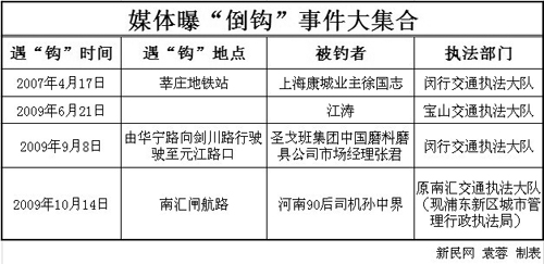 而上海當(dāng)?shù)匾晃焕纤緳C(jī)則透露,“倒鉤”執(zhí)法在上海其實(shí)很普遍,“因?yàn)檎娴暮谲嚭茈y抓,所以就找個‘釣鉤’來釣?zāi)闵香^,讓你做黑車、罰點(diǎn)款。整個上海市至少有上千個‘釣鉤’。”