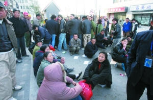 昨天中午,為討薪,圍堵(北京市)大興區(qū)世嘉博苑小區(qū)大門已兩天的300余名建筑工人,開始向小區(qū)內(nèi)投擲磚頭,并欲強行沖入小區(qū)。開發(fā)商雇用的保安也動用水槍向工人們噴射。