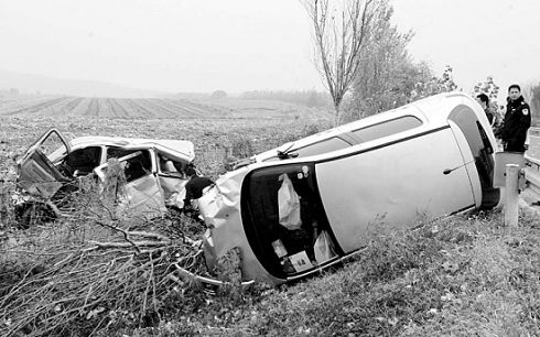 10月26日上午9點20分左右,在沈丹高速公路20公里處沈陽方向發(fā)生一起交通事故,一輛標(biāo)致307轎車與一輛同向行駛的微型面包車撞在了一起后,一同沖下路基闖入了高速公路東側(cè)的田地中。車禍造成微型面包車上的正副駕駛兩人死亡,其余4人不同程度受傷。死亡的是夫妻倆,從本溪回昌圖老家奔喪,沒想到在路上發(fā)生了這樣的不幸。
