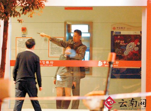 10月31日22:30左右,昆明市北京路一自助銀行內(nèi),一男子挾持一名婦女,正在與警方對峙。