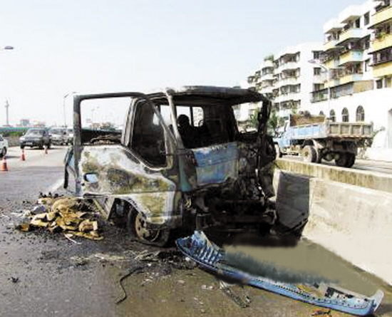 據(jù)警方人員說(shuō),他們接到報(bào)警趕到現(xiàn)場(chǎng)時(shí),火勢(shì)很大,經(jīng)消防車(chē)施救,大火10分鐘后被撲滅。據(jù)警方透露,出事小車(chē)屬江門(mén)市某五金制品公司,車(chē)牌號(hào)為粵JN21×。該車(chē)核載重量為1.75噸,出事時(shí)該車(chē)已涉嫌超載。(饒新一 李昕)