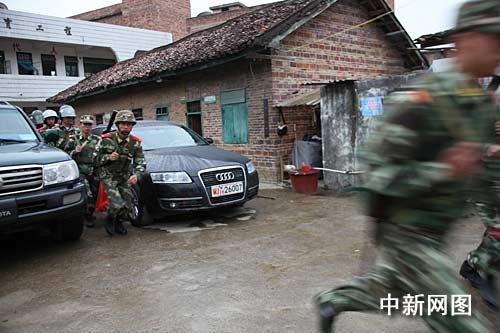 石順兵殺人后逃至一座方圓三平方公里、名為“大紅山”的荒山上藏匿。當(dāng)日下午,河池市武警官兵、公安民警等四百多人集結(jié)在山上進行地毯式搜山。下午四點多,幾名武警發(fā)現(xiàn)山上一塊巖石下的草叢中竄出一人,其見到武警后又立即回竄,三名武警遂躍上前去。面對三個黑洞洞的槍口,石順兵舉起雙手說:“我投降!”