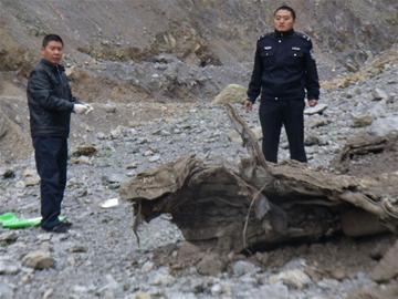 接到報(bào)案后,桑棗派出所民警迅速到達(dá)現(xiàn)場展開勘察。在現(xiàn)場,他們發(fā)現(xiàn)一輛壓扁的白色汽車,其實(shí)也只能算汽車的一部分了:車體和輪胎已經(jīng)分離,輪胎已經(jīng)爆裂,輪轂上包裹著厚厚的泥沙。車輛被山石擠壓,已經(jīng)嚴(yán)重變形,車型和車牌號(hào)都無法辨清,只能判定為一輛白色小轎車,從外形上看像北斗星小轎車。
