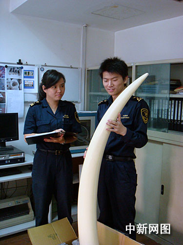 據(jù)透露,2009年10月26日,上海海關(guān)駐郵局辦事處關(guān)員小郭依照慣例對(duì)進(jìn)口郵件的申報(bào)單進(jìn)行審核。審單過程中,一件由日本郵寄進(jìn)境、申報(bào)內(nèi)容為“非洲特色裝飾品,工藝品”的單子引起了她的注意。原來(lái)今年6月,海關(guān)就曾查獲一批由烏拉圭進(jìn)境的象牙雕刻制品,其收件地址與這票貨物完全相同!小郭于是立即對(duì)可疑郵包進(jìn)行了機(jī)檢。X光機(jī)下,關(guān)員觀察到一個(gè)類似象牙弧形狀的深色物體,打開扁長(zhǎng)方形的盒狀包裹,關(guān)員發(fā)現(xiàn)里面塞有大量的報(bào)紙,報(bào)紙堆中藏有一根通體玉白,實(shí)心、表面微亮、未經(jīng)雕琢的象牙。