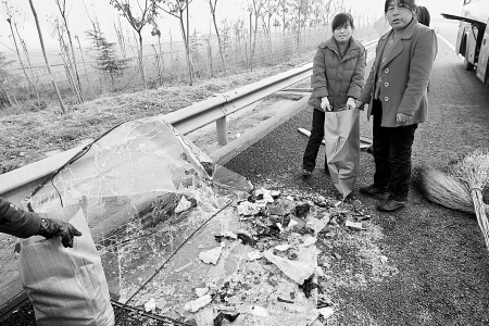 此時(shí),距離3輛車(chē)相撞不到100米的路對(duì)面,西安前往富平方向的車(chē)道上,一輛從西安到合陽(yáng)的大客車(chē),車(chē)前駕駛室位置已經(jīng)完全凹陷,駕駛座椅被撞得掀起,車(chē)頭左前角已殘破不堪。一位中年女士臉上掛著血跡,正站在高速路邊,一臉地焦灼。她姓孟,就是這輛受損客車(chē)的車(chē)主,正等候拖車(chē)拖走事故車(chē)。她告訴記者,她的車(chē)上拉了15名乘客。“大約10點(diǎn)半,走到這兒看見(jiàn)前面有消防車(chē),像是出事了。霧太大,還沒(méi)看清楚咋回事,玻璃就飛濺到臉上了。這才意識(shí)到追尾了,‘追’了前面的一輛油罐車(chē)”。