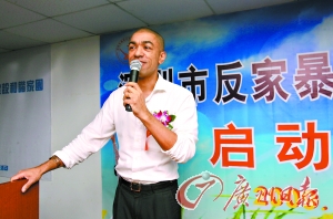 昨日是國際反家庭暴力日,鵬星社工服務(wù)社舉行了反家暴社工援助項目的啟動儀式,美國總統(tǒng)奧巴馬的弟弟馬克·奧巴馬·狄善九作為特別嘉賓出席儀式。