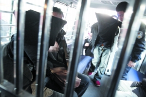 昨日,21名戴著手銬、蒙著頭套的電信詐騙案嫌疑人被押解回京。9月24日上午,昌平市民許某接到謊稱是上海市公安局和上海市銀監(jiān)會(huì)工作人員的電話,他們稱事主電話欠費(fèi),被牽扯進(jìn)一起國際金融犯罪,許某分兩次將85萬轉(zhuǎn)賬到騙子的賬戶。許某報(bào)警后,偵查員最終在西安將臺(tái)灣人劉茂安等21人控制。目前,21人均被刑事拘留。本報(bào)記者 周曉東 攝